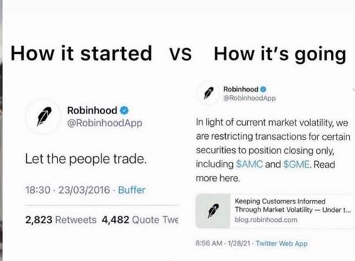 Yesterday, when TD Ameritrade became the first exchange to impose “unprecedented” restrictions on GME trading, we predicted what would happen next: “expect many more exchanges to follow suit, because hedge funds clearly need to be protected when faced with the retail daytrading mob.”